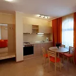 Zawierające balkon i miejsce do jedzenia pokoje w Aparthotel Royal Sun w Słonecznym Brzegu są wyposażone w takie media jak telewizję satelitarną. Do dyspozycji są: oddzielna toaleta i wanna, a także kuchenka mikrofalowa, czajnik elektryczny i zmywarka.
